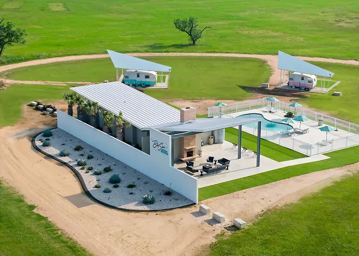 Der nächstgelegene Flughafen ist der Austin-Bergstrom International Airport, der ungefähr 100 km vom Blue Skies Retro Resort Pool-Fireplace entfernt liegt. Eine gute Anbindung an die umliegenden Attraktionen ermöglicht es Reisenden, die Schönheit von Texas in vollen Zügen zu genießen.